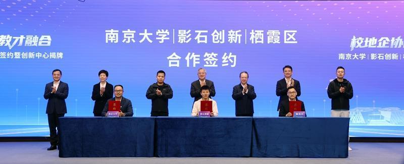 南京大学、影石创新、栖霞区签订战略合作协议。崔晓摄